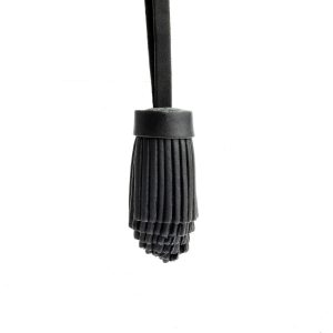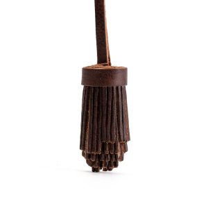 - Pom-pom style with tiered leather fringe